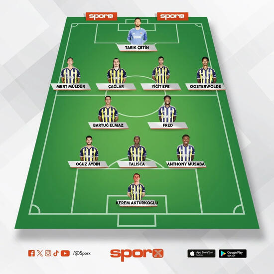 Fenerbahçe: Tarık, Mert, Çağlar, Yiğit Efe, Oosterwolde, Bartuğ, Fred, Oğuz, Talisca, Musaba, Kerem.