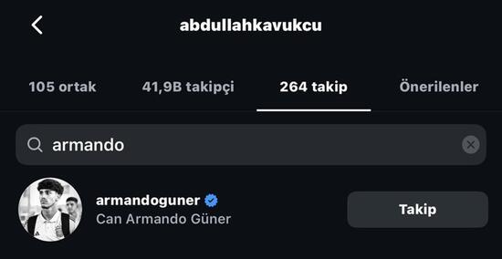Genç oyuncu, sarı kırmızılı yetkililer Abdullah Kavukcu ve Fatih Demireli’yi toplumsal medya hesabından takibe aldı.