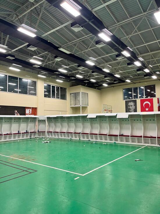 Soyunma odasına çevrilen salona elektrikli ısıtıcılar yerleştirildi. Galatasaraylı futbolcular tesiste bayan tuvaletlerini ve duşlarını kullanmak zorunda kaldı.