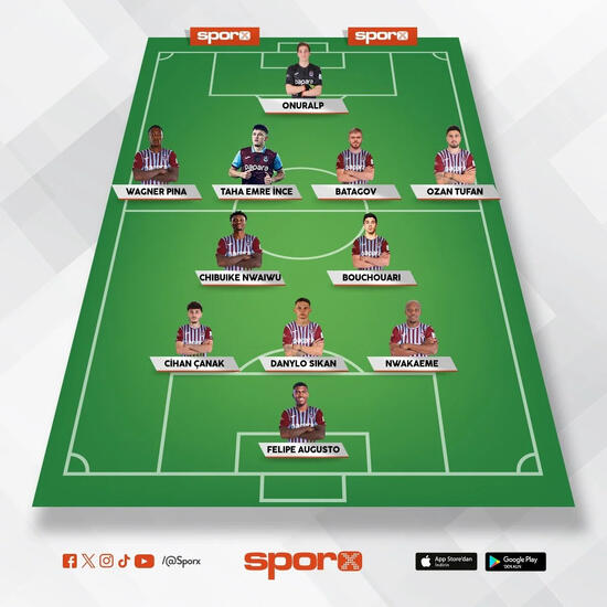 Trabzonspor: Onuralp, Pina, Taha Emre, Batagov, Ozan, Nwaiwu, Bouchouari, Cihan, Sikan, Nwakaeme, Augusto.