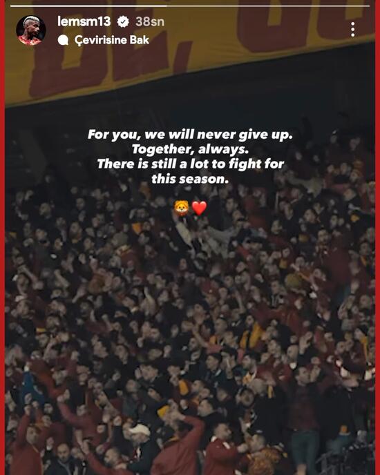 Taraftarların tezahürat yaptıkları bir anı paylaşan Gabonlu futbolcu, “Sizin için asla pes etmeyeceğiz. Her vakit birlikte. Bu dönem için hala gayret edilecek çok şey var.” tabirlerini kullandı.