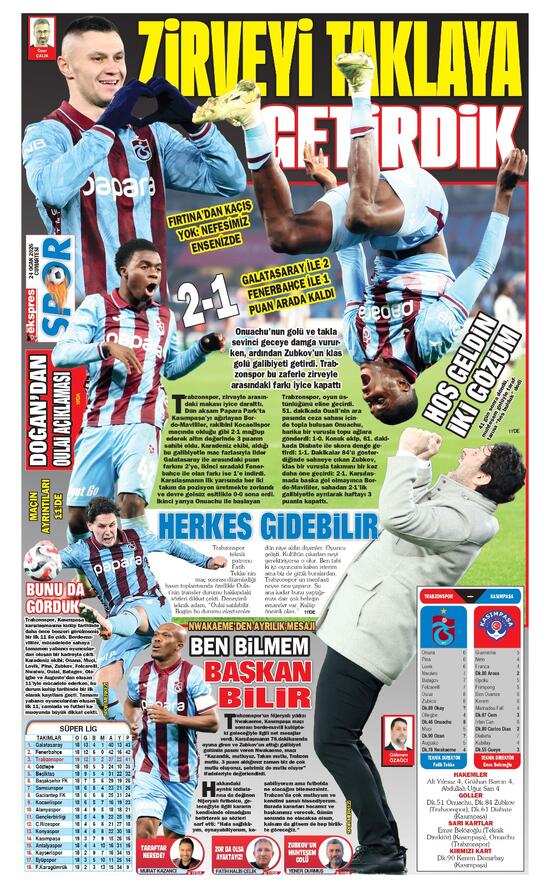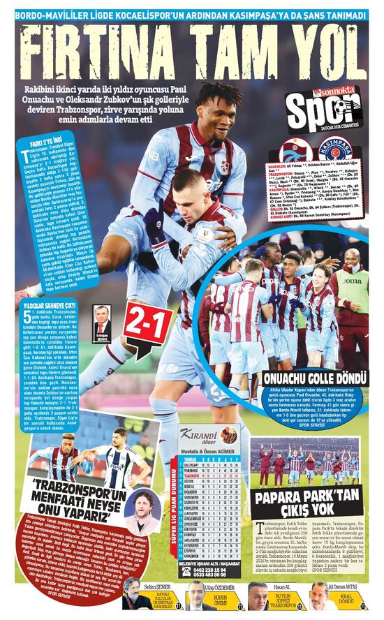 Öte yandan Trabzon’da yayın yapan lokal gazeteler de Kasımpaşa karşısında alınan galibiyeti manşetlerine farklı başlıklarla taşıdı. Mahallî basında öne çıkan başlıklar şu şekilde