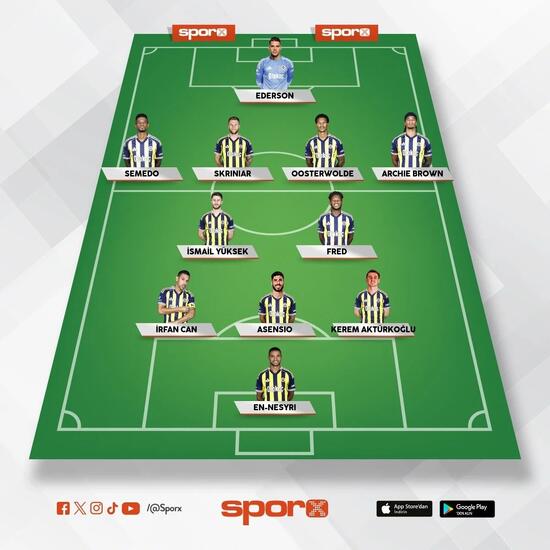 Fenerbahçe: Ederson, Semedo, Skriniar, Oosterwolde, Brown, İsmail, Fred, İrfan Can, Asensio, Kerem, En-Nesyri